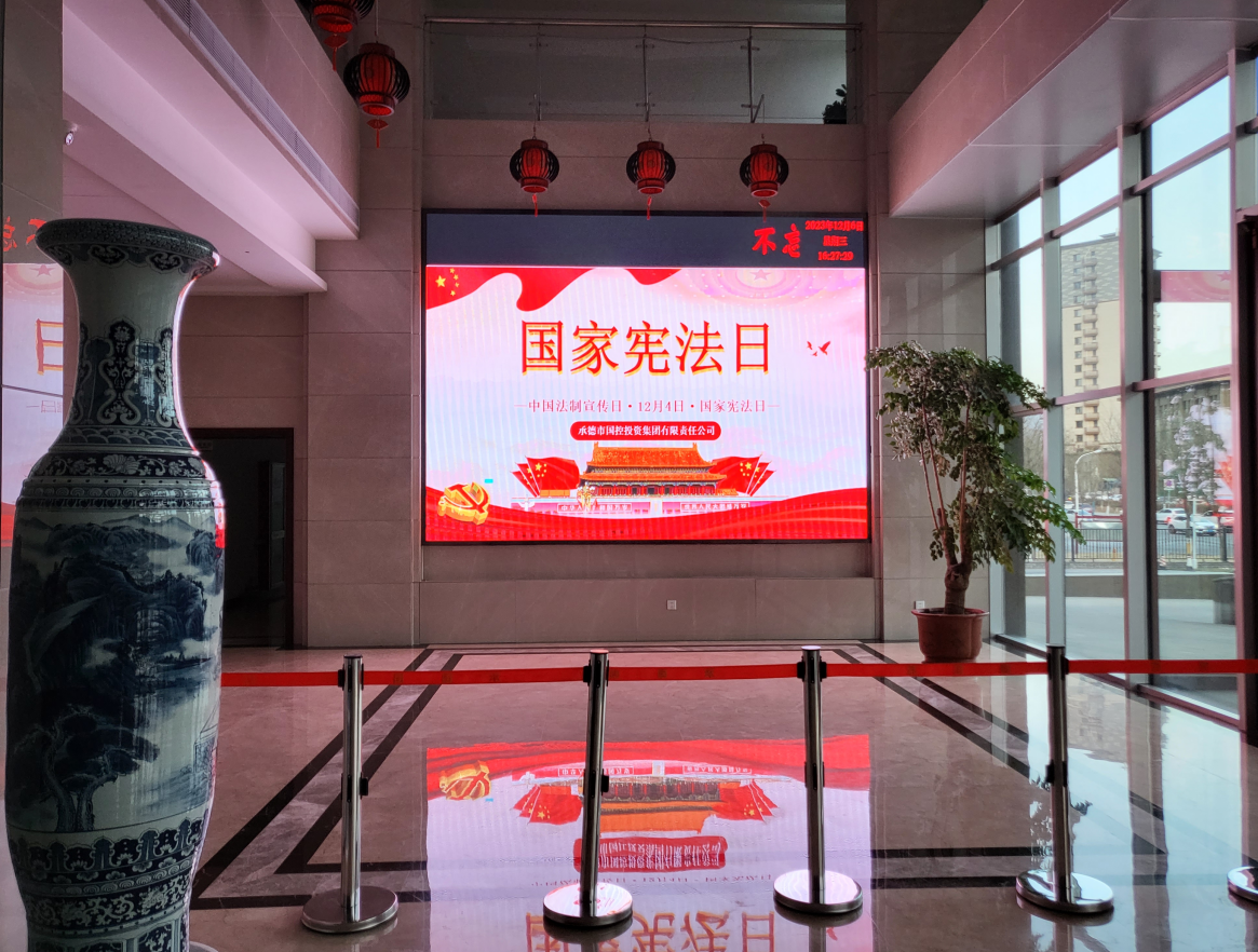 首先,在LED大屏循环播放国家宪法日相关知识,积极引导全体职工学习宪法,了解学习宪法的意义,使宪法精神深入人心。